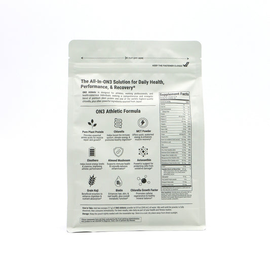 ON3 Athletic provides athletes, working professionals, and health-conscious people with an energetic blend of premium plant protein and the world’s highest-quality chlorella sourced straight from Japan.